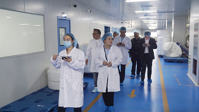 在我們講解員的帶領(lǐng)下,其一行人先后參觀了我司的辦公環(huán)境、產(chǎn)品展廳、無(wú)塵生產(chǎn)車間、配液室、檢驗(yàn)室、倉(cāng)儲(chǔ)庫(kù)、打包發(fā)貨倉(cāng)庫(kù)。邊參觀邊對(duì)濕巾生產(chǎn)過(guò)程進(jìn)行了詳細(xì)介紹,使他們更加深入了解濕巾的生產(chǎn)工藝。最后,我司負(fù)責(zé)人與同慶樓總部工作人員進(jìn)行了座談,認(rèn)真坦誠(chéng)的深入交談與探討。同慶樓代表表示對(duì)我司的硬件實(shí)力很滿意,對(duì)生產(chǎn)工藝和衛(wèi)生安全很放心。對(duì)未來(lái)的合作更加充滿信心。